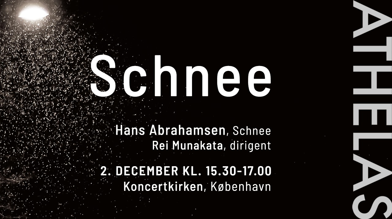 ATHELAS’ julekoncert er efterhånden ved at være en traditionsbunden affære: For sjette år i træk opfører ensemblet Hans Abrahamsens nyklassiker Schnee (2008) i Koncertkirken – og for tredje år i træk er det med den erfarne, japanskfødte dirigent Rei Munakata på podiet. Schnee er et hovedværk i Abrahamsens samlede produktion: Et én time langt værk bestående af ti kontrapunktiske satser, ti kanoner, hvori melodierne konstant forskydes ligesom lys forskydes til arabesklignende mønstre, når det filtreres gennem et kalejdoskop.