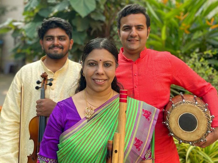 She has released 3 CD albums titled “Bamboo in Harmony”, “Bamboo Sings” and “Dakshin” in collaboration with popular and competitive artists from the South Indian music tradition. The albums have been highly appreciated by critiques and audiences alike.
